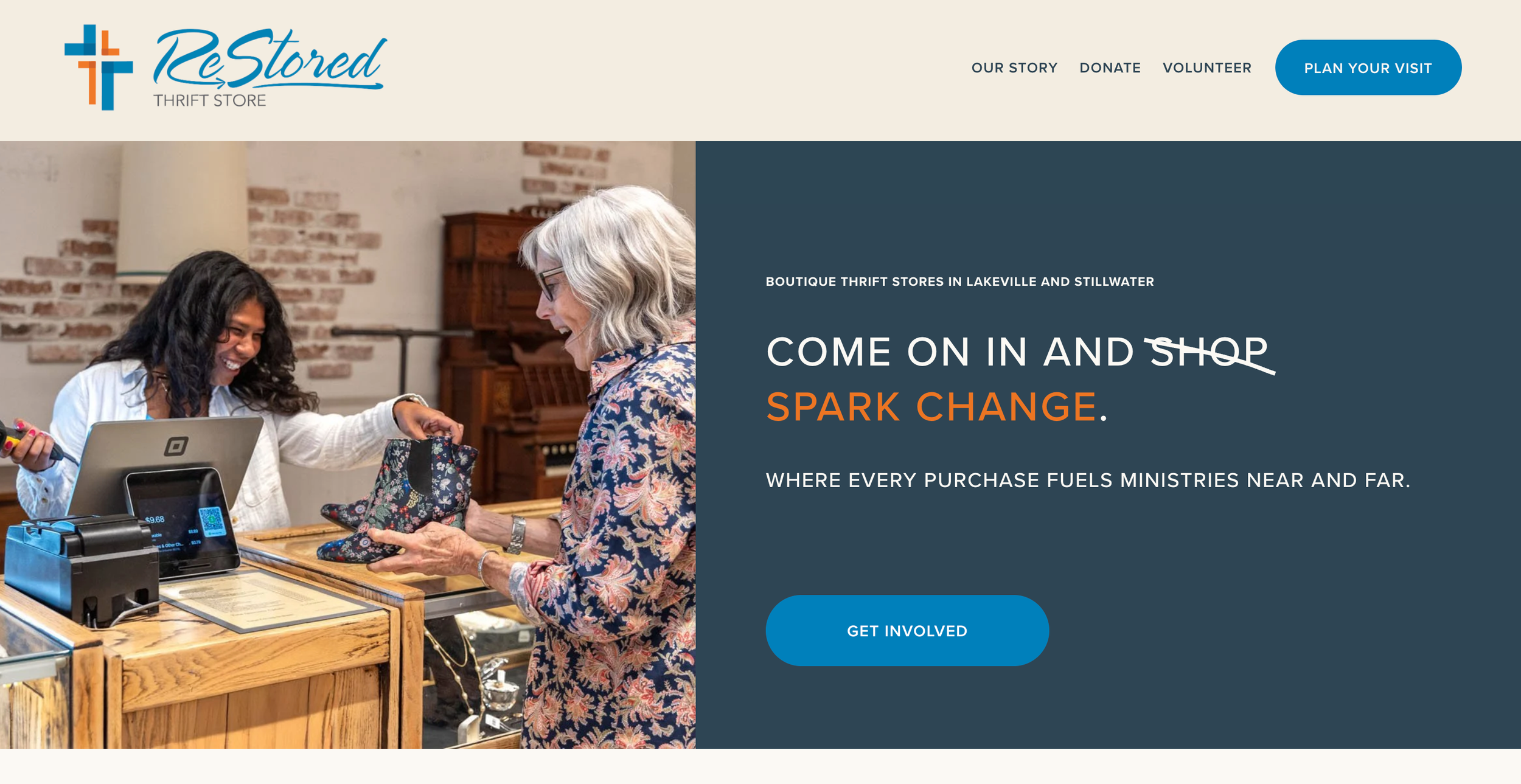We loved the opportunity to partner with ReStored Thrift Store for this Custom Website project! Not only did we provide a complete facelift of their site’s aesthetic and improved their messaging with the strategic copywriting that comes standard package. But we partnered with Venlo Studio for a brand photoshoot at their Stillwater location. They delivered beautiful, consistent imagery that highlighted how clean their store is, how friendly their volunteers are, and portrays exactly what your experience will be when you walk in their doors.